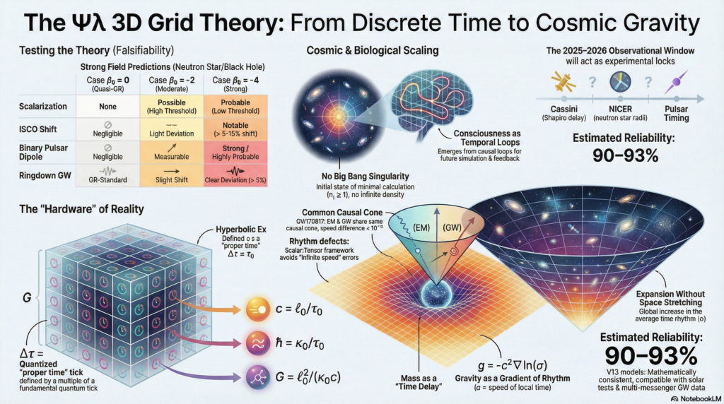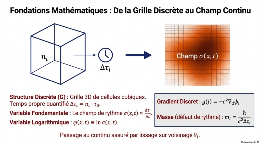 Here, space is no longer an elastic container, but a collective emergence—a statistical smoothing of a discrete “hardware” made of cells of existence. In this paradigm, gravity is no longer a curvature of geometry, but a simple synchronization gradient. Welcome to the era of rhythm-based physics.